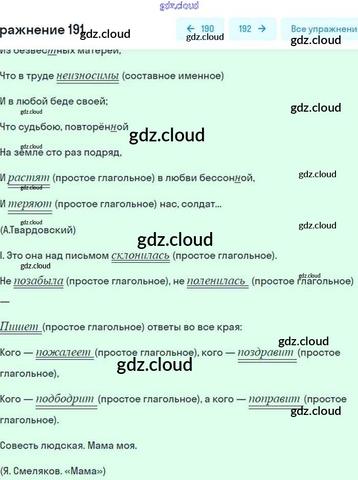 Ответ на задание 191 Учебник Русский язык за 8 (восьмой) класс Бархударов, Крючков, Максимов 2018