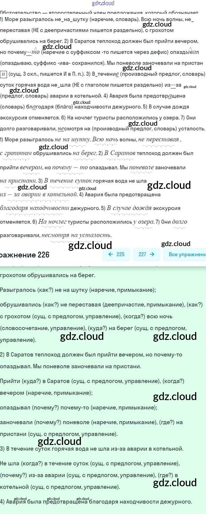 Ответ на задание 226 Учебник Русский язык за 8 (восьмой) класс Бархударов, Крючков, Максимов 2018
