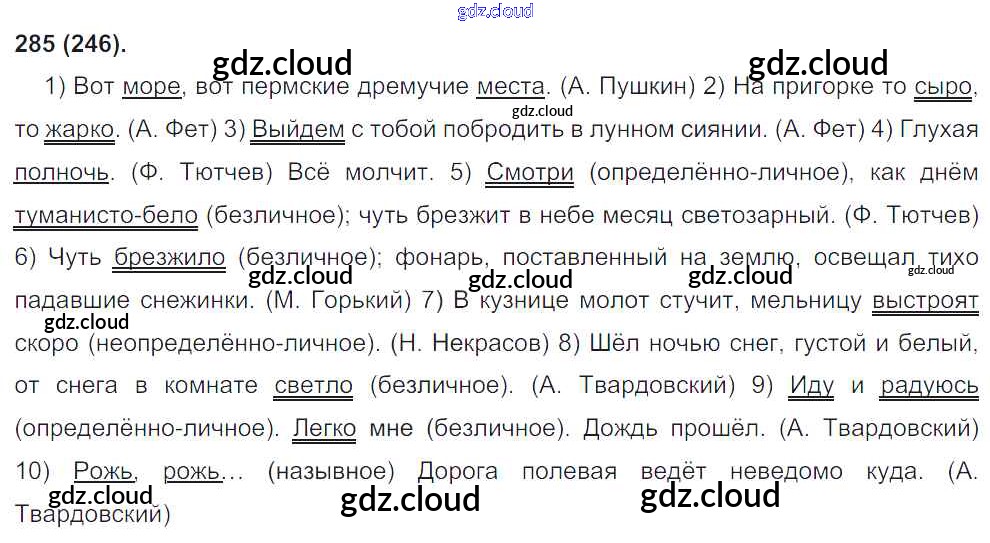 Ответ на задание 285 Учебник Русский язык за 8 (восьмой) класс Бархударов, Крючков, Максимов 2018 ФГОС онлайн и без номера телефона.