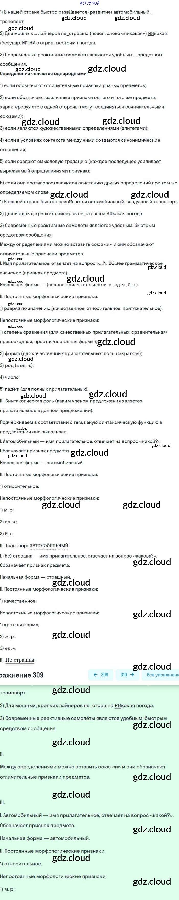 Ответ на задание 309 Учебник Русский язык за 8 (восьмой) класс Бархударов, Крючков, Максимов 2018