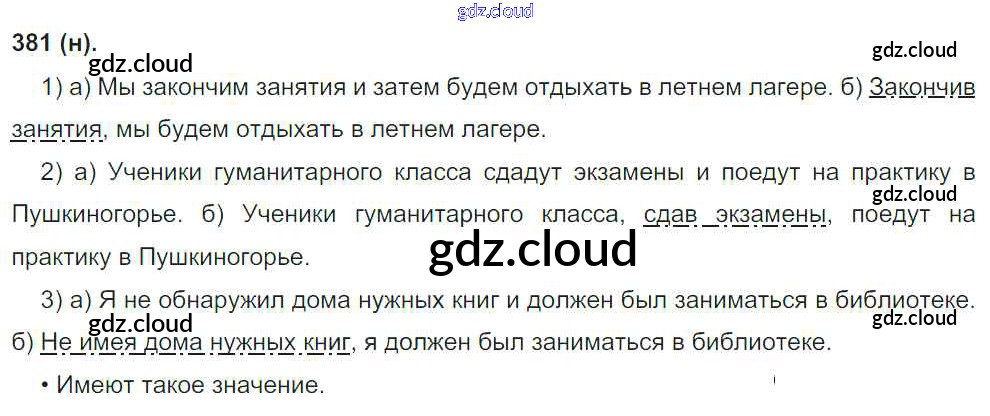 Ответ на задание 381 Учебник Русский язык за 8 (восьмой) класс Бархударов, Крючков, Максимов 2018 ФГОС онлайн и без номера телефона.