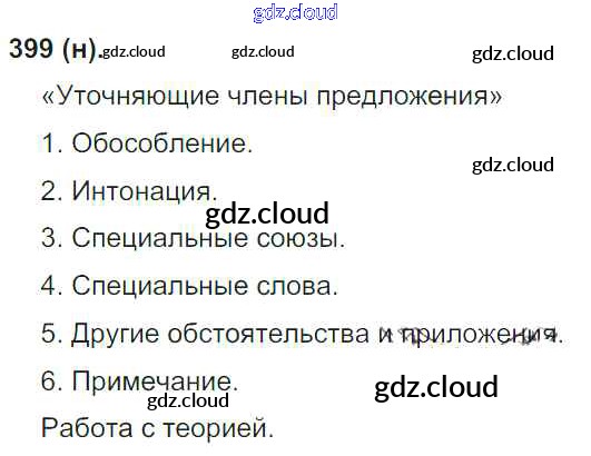 Ответ на задание 399 Учебник Русский язык за 8 (восьмой) класс Бархударов, Крючков, Максимов 2018 ФГОС онлайн и без номера телефона.