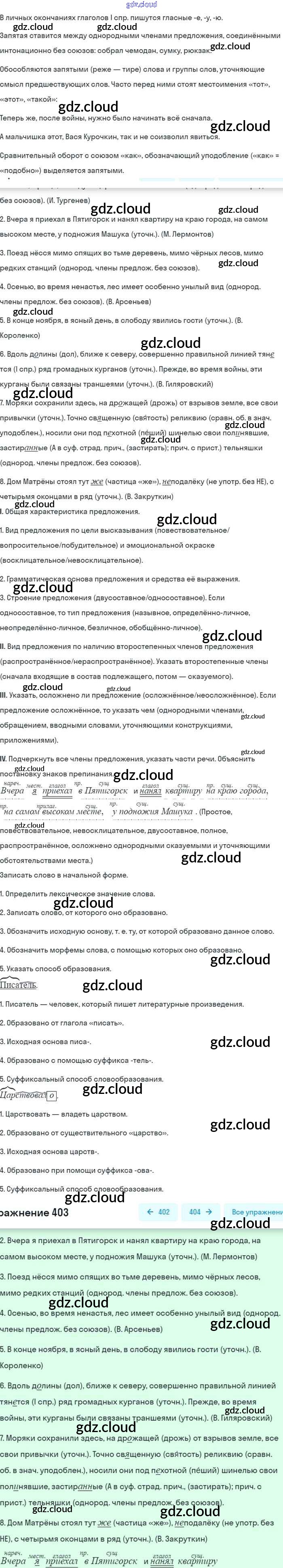 Ответ на задание 403 Учебник Русский язык за 8 (восьмой) класс Бархударов, Крючков, Максимов 2018