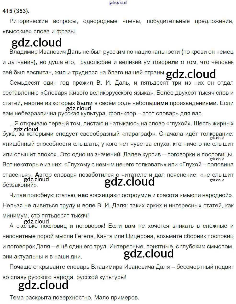 Ответ на задание 415 Учебник Русский язык за 8 (восьмой) класс Бархударов, Крючков, Максимов 2018 ФГОС онлайн и без номера телефона.