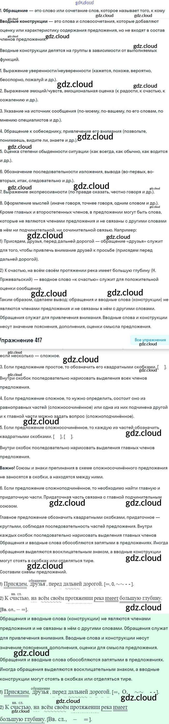 Ответ на задание 417 Учебник Русский язык за 8 (восьмой) класс Бархударов, Крючков, Максимов 2018