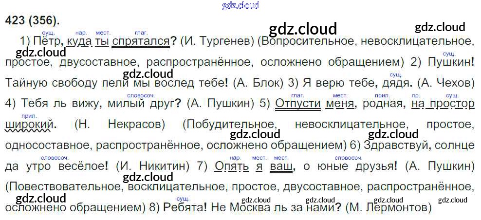 Ответ на задание 423 Учебник Русский язык за 8 (восьмой) класс Бархударов, Крючков, Максимов 2018 ФГОС онлайн и без номера телефона.