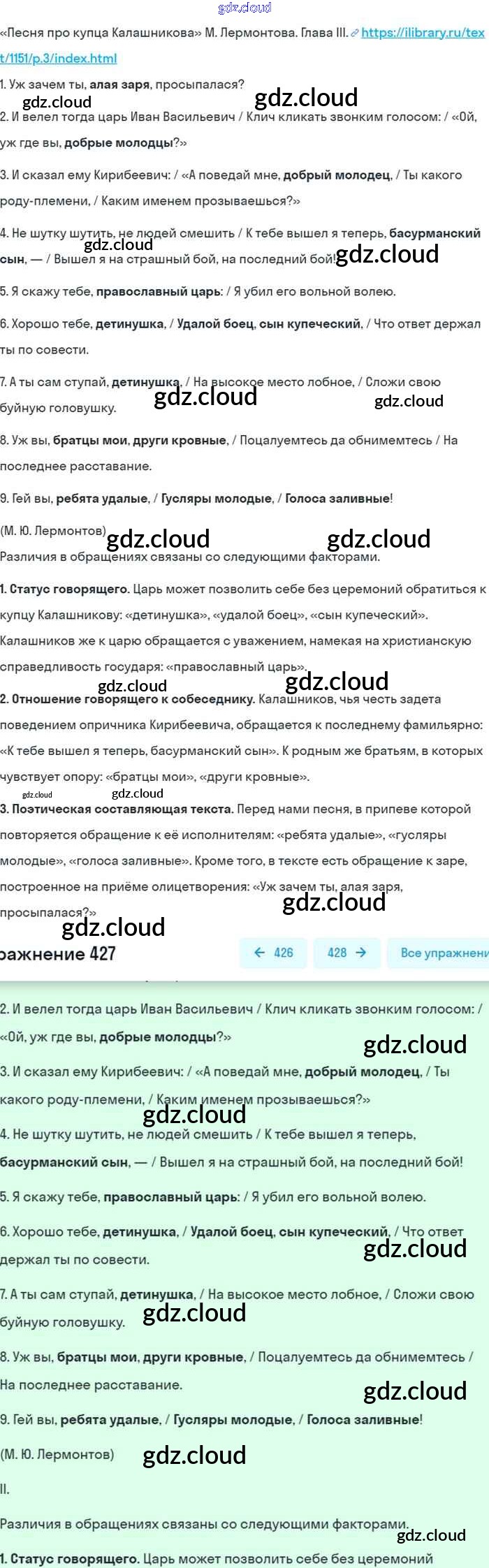 Ответ на задание 427 Учебник Русский язык за 8 (восьмой) класс Бархударов, Крючков, Максимов 2018