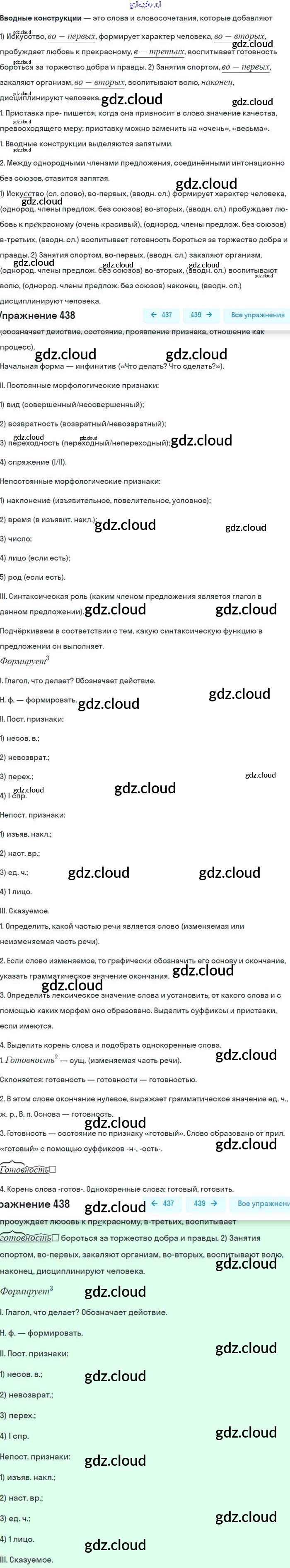 Ответ на задание 438 Учебник Русский язык за 8 (восьмой) класс Бархударов, Крючков, Максимов 2018