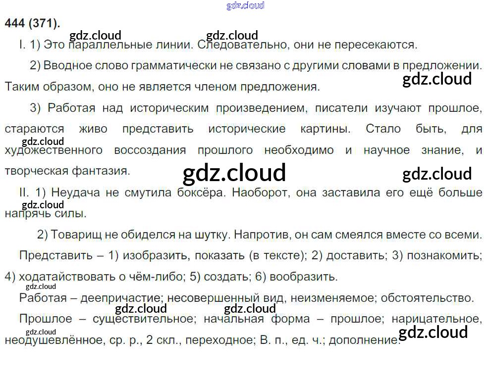 Ответ на задание 444 Учебник Русский язык за 8 (восьмой) класс Бархударов, Крючков, Максимов 2018 ФГОС онлайн и без номера телефона.