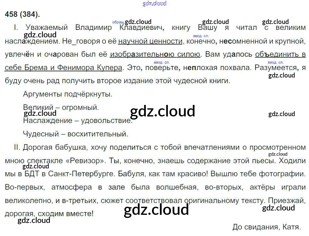 Ответ на задание 458 Учебник Русский язык за 8 (восьмой) класс Бархударов, Крючков, Максимов 2018 ФГОС онлайн и без номера телефона.