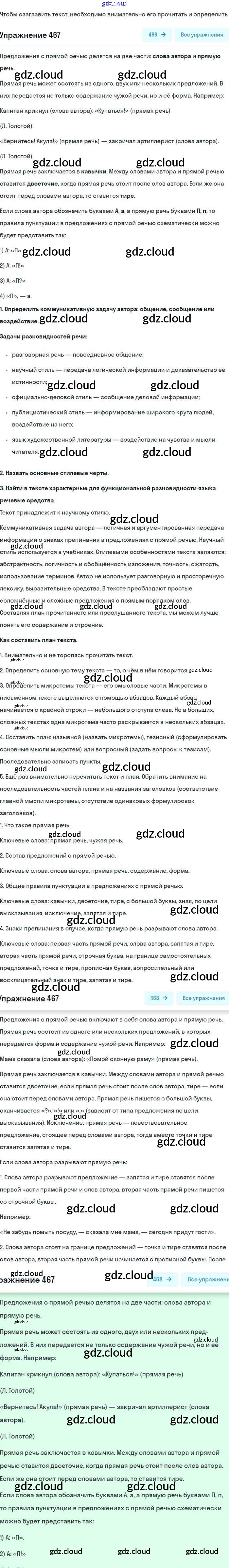 Ответ на задание 467 Учебник Русский язык за 8 (восьмой) класс Бархударов, Крючков, Максимов 2018