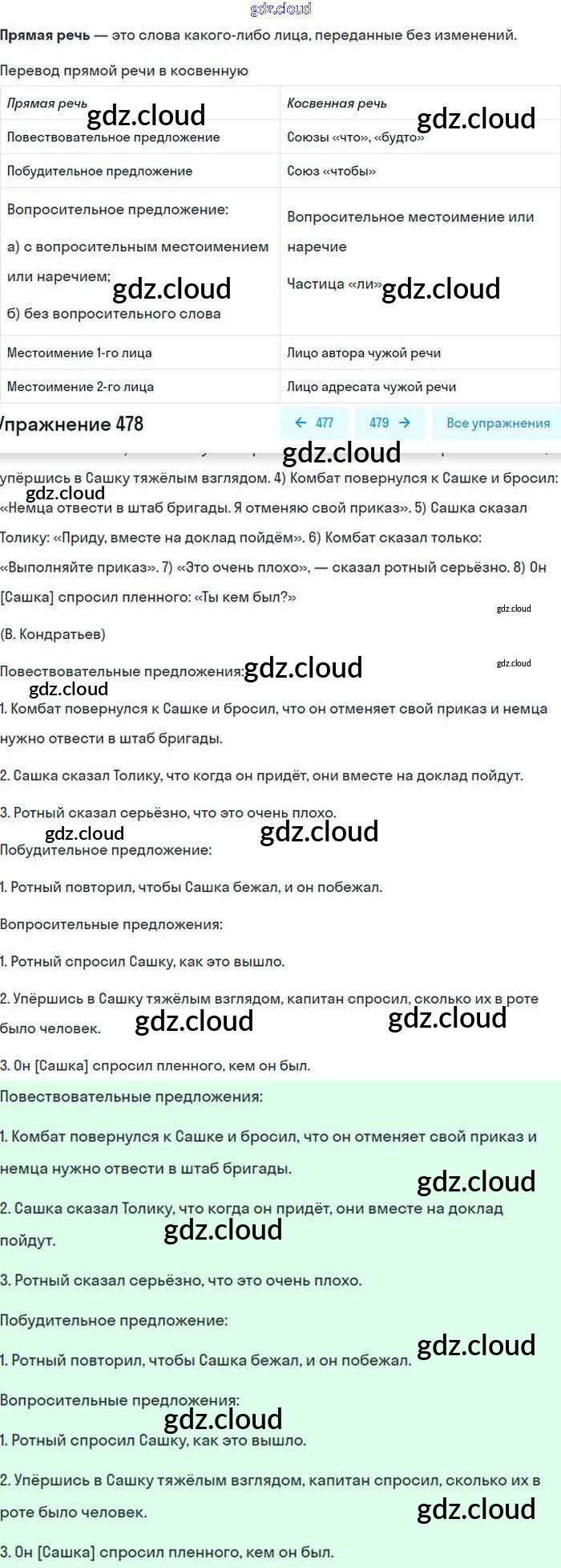 Ответ на задание 478 Учебник Русский язык за 8 (восьмой) класс Бархударов, Крючков, Максимов 2018