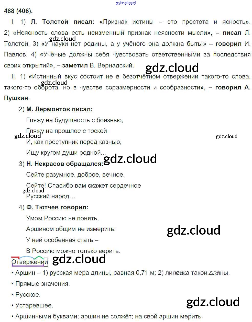 Ответ на задание 488 Учебник Русский язык за 8 (восьмой) класс Бархударов, Крючков, Максимов 2018 ФГОС онлайн и без номера телефона.