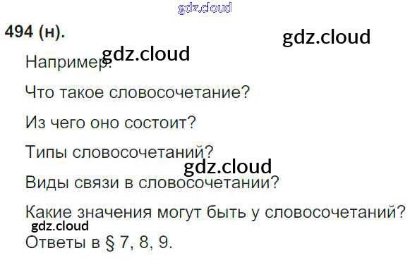 Ответ на задание 494 Учебник Русский язык за 8 (восьмой) класс Бархударов, Крючков, Максимов 2018 ФГОС онлайн и без номера телефона.