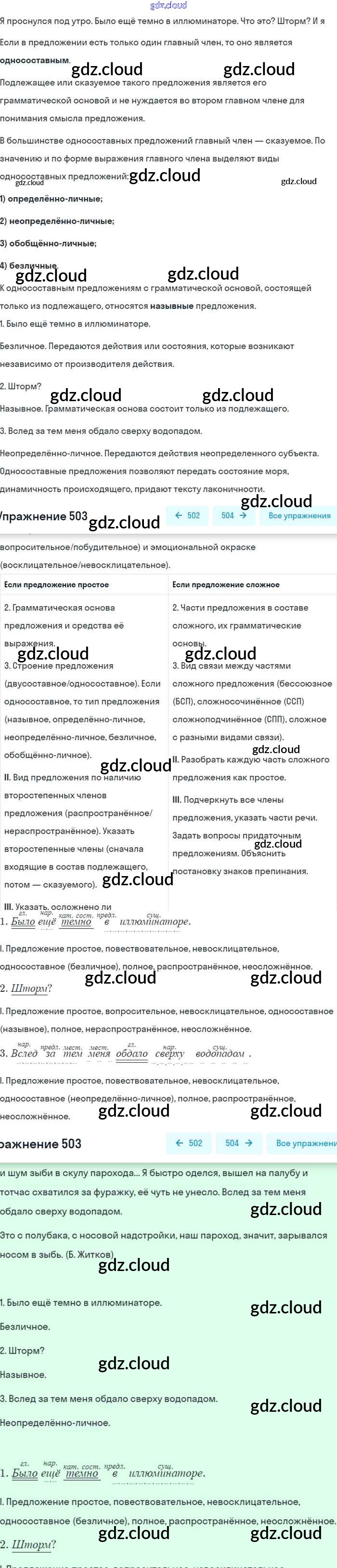 Ответ на задание 503 Учебник Русский язык за 8 (восьмой) класс Бархударов, Крючков, Максимов 2018