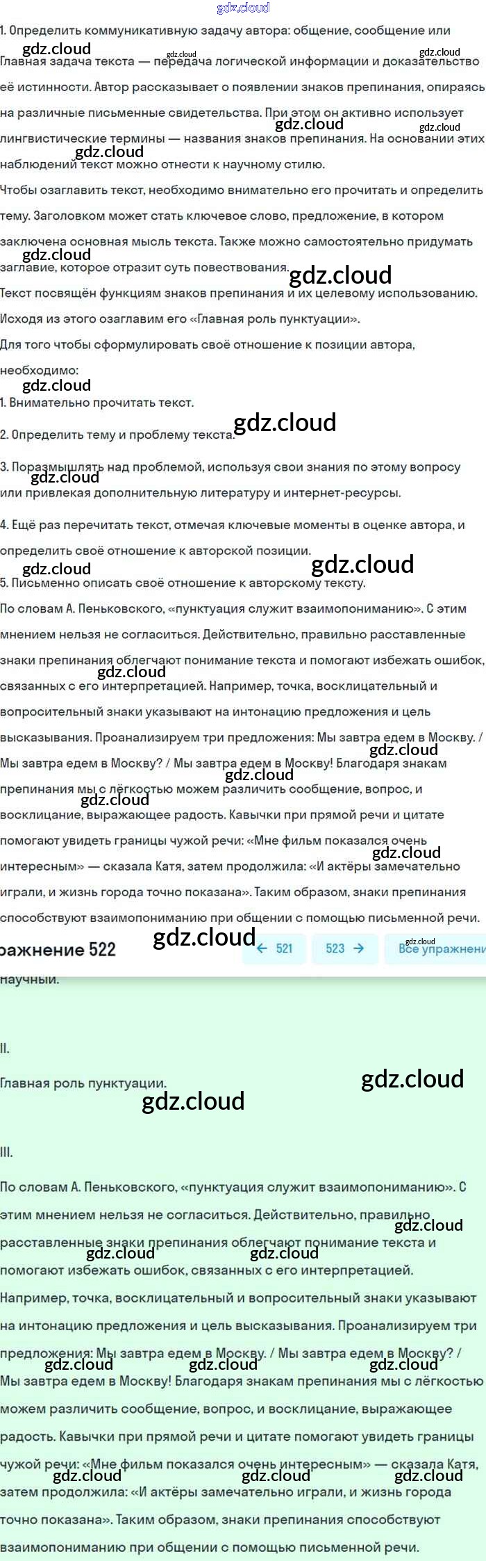 Ответ на задание 522 Учебник Русский язык за 8 (восьмой) класс Бархударов, Крючков, Максимов 2018