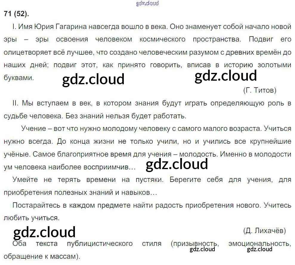 Ответ на задание 71 Учебник Русский язык за 8 (восьмой) класс Бархударов, Крючков, Максимов 2018 ФГОС онлайн и без номера телефона.