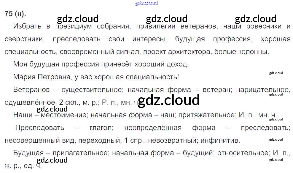 Ответ на задание 75 Учебник Русский язык за 8 (восьмой) класс Бархударов, Крючков, Максимов 2018 ФГОС онлайн и без номера телефона.
