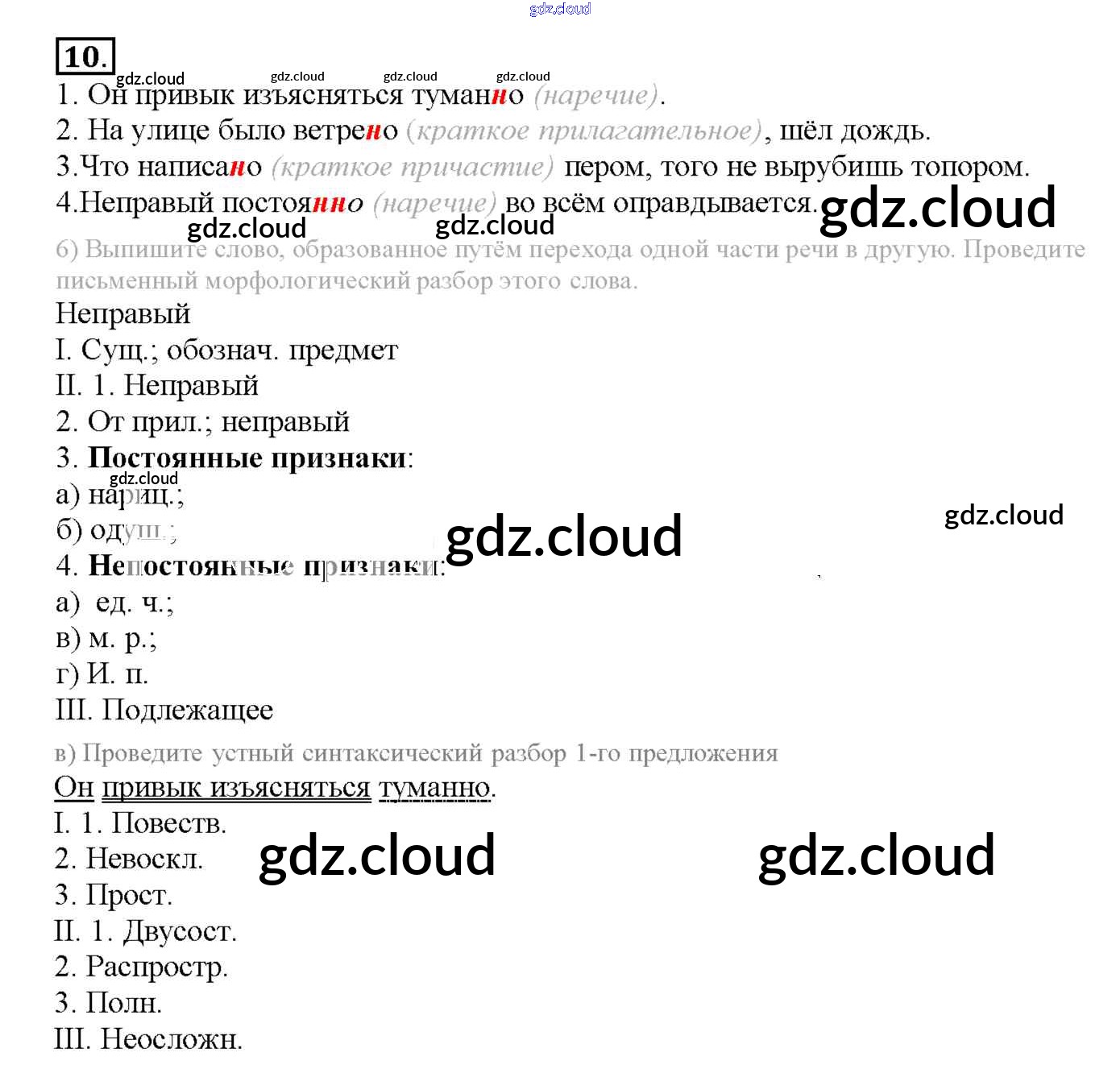 Ответ на задание 10 Рабочая тетрадь Русский язык за 8 (восьмой) класс Львов УМК 2016