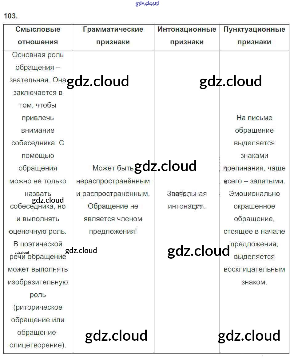 Ответ на задание 103 Рабочая тетрадь Русский язык за 8 (восьмой) класс Львов УМК 2016