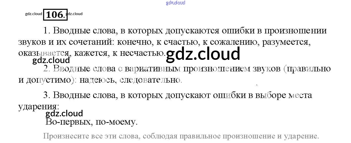 Ответ на задание 106 Рабочая тетрадь Русский язык за 8 (восьмой) класс Львов УМК 2016