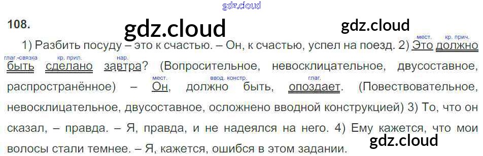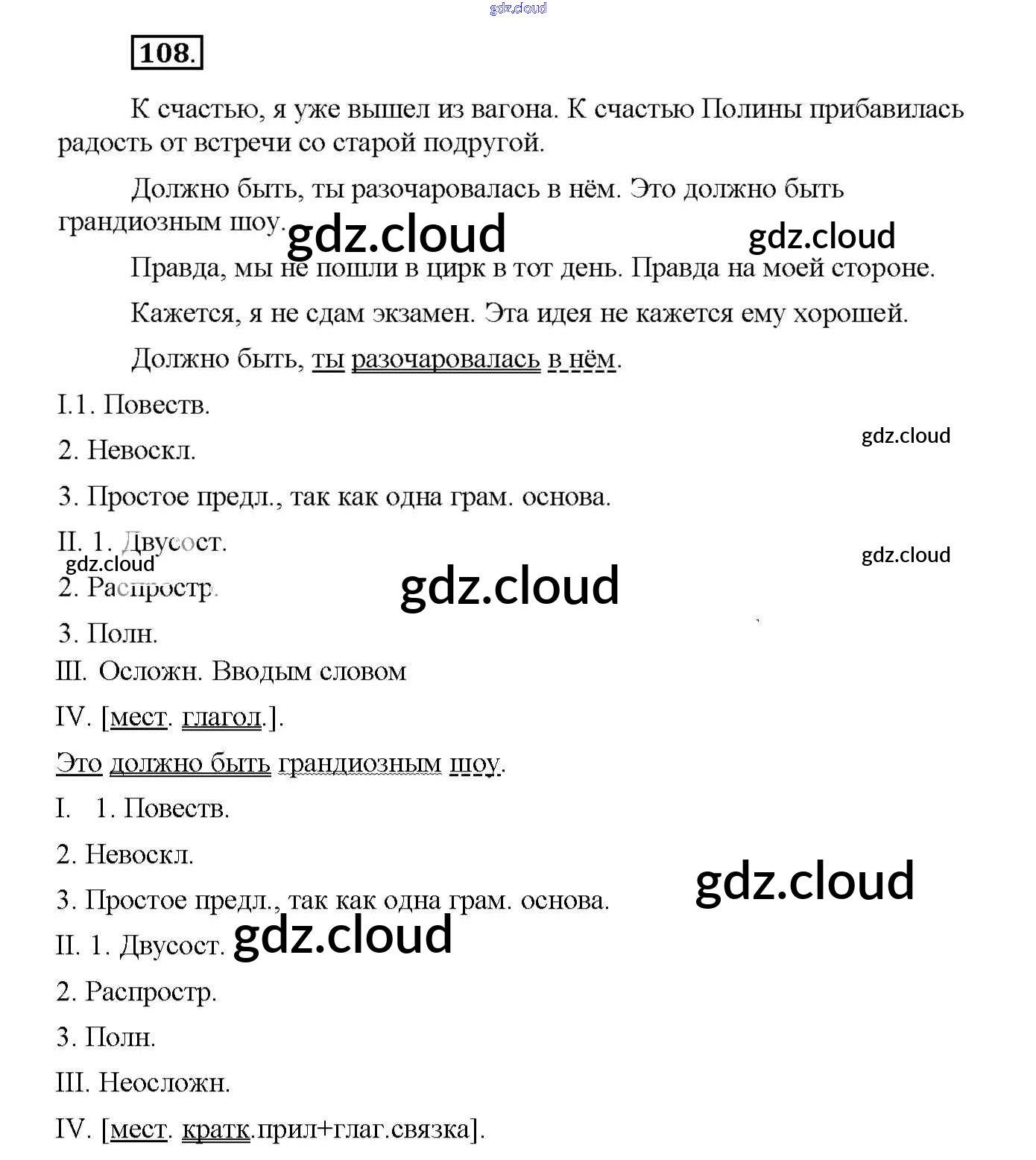 Ответ на задание 108 Рабочая тетрадь Русский язык за 8 (восьмой) класс Львов УМК 2016