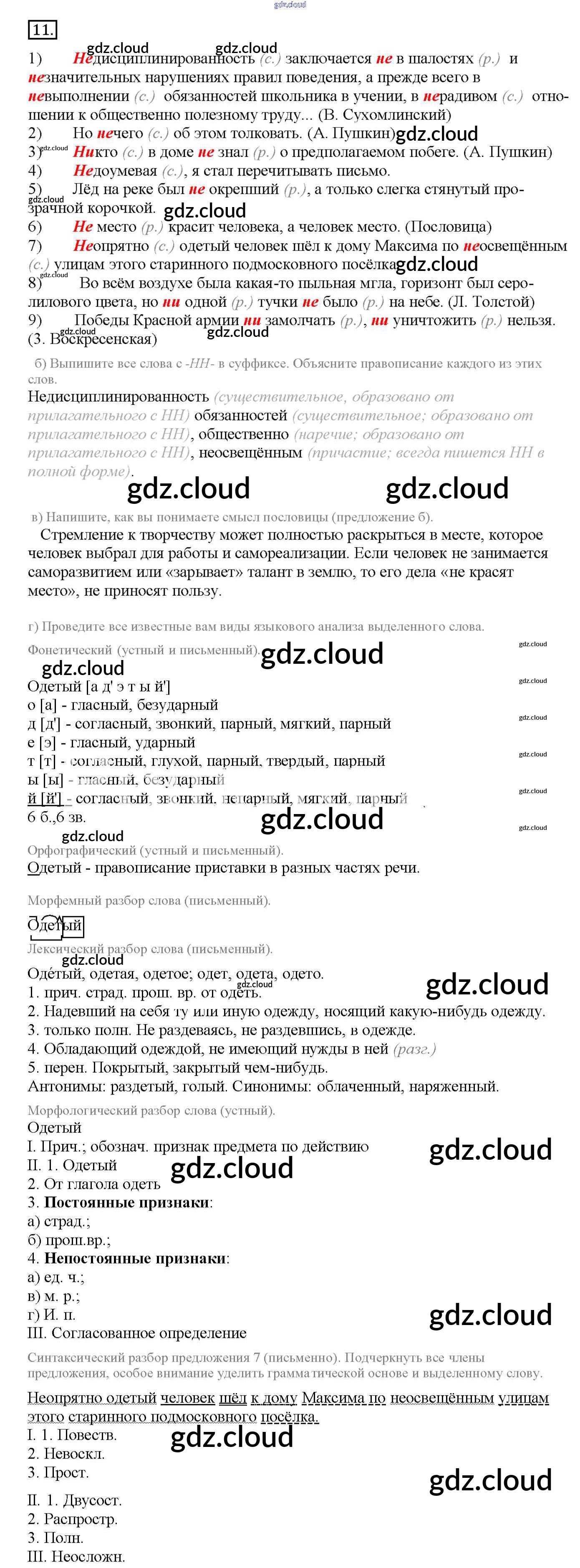 Ответ на задание 11 Рабочая тетрадь Русский язык за 8 (восьмой) класс Львов УМК 2016
