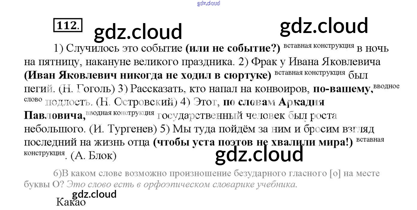 Ответ на задание 112 Рабочая тетрадь Русский язык за 8 (восьмой) класс Львов УМК 2016
