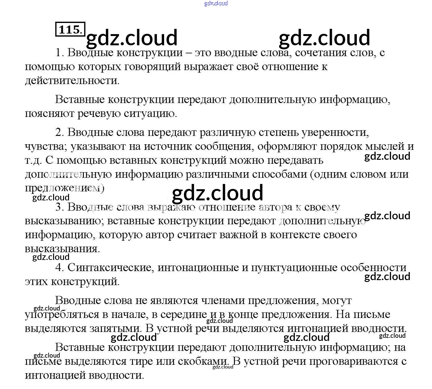 Ответ на задание 115 Рабочая тетрадь Русский язык за 8 (восьмой) класс Львов УМК 2016 ФГОС онлайн и без номера телефона.