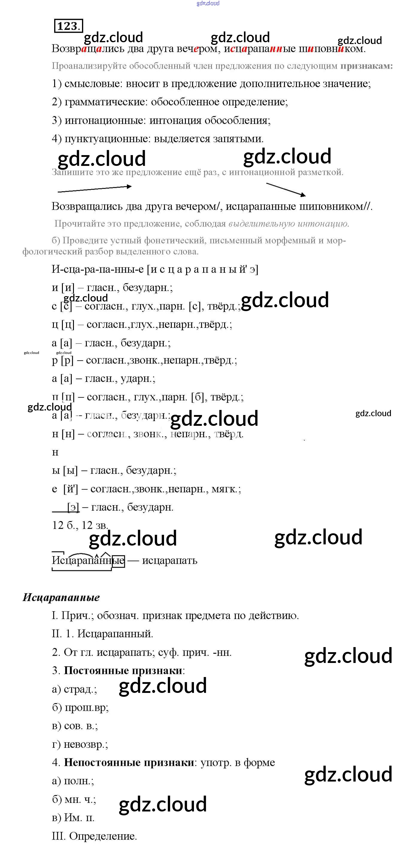 Ответ на задание 123 Рабочая тетрадь Русский язык за 8 (восьмой) класс Львов УМК 2016