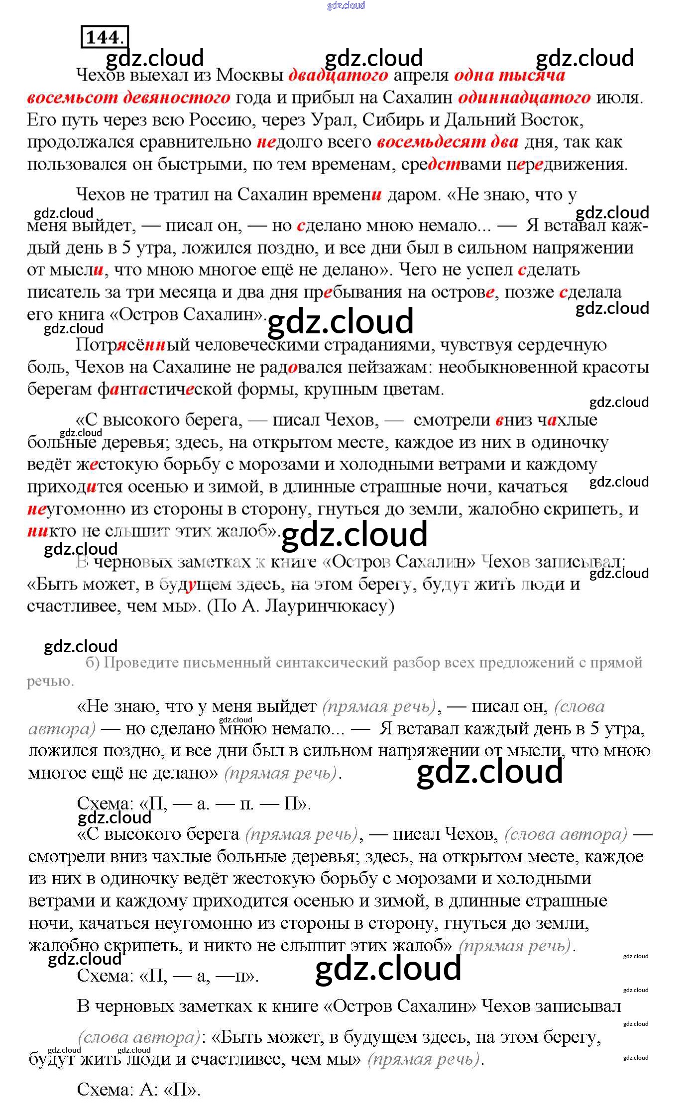 Ответ на задание 144 Рабочая тетрадь Русский язык за 8 (восьмой) класс Львов УМК 2016