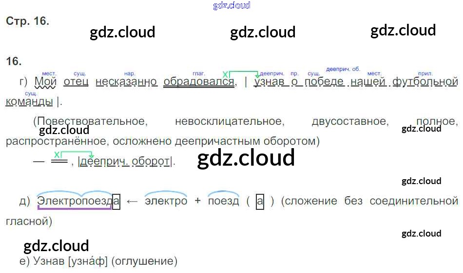 Ответ на задание 16 Рабочая тетрадь Русский язык за 8 (восьмой) класс Львов УМК 2016