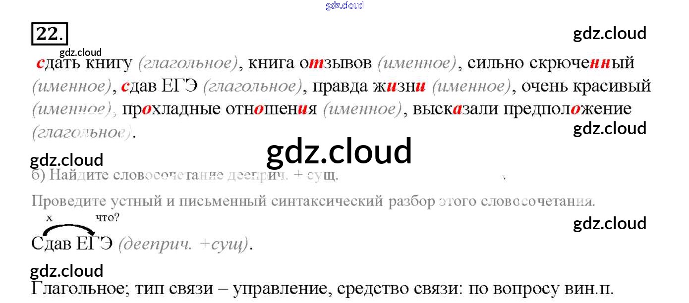 Ответ на задание 22 Рабочая тетрадь Русский язык за 8 (восьмой) класс Львов УМК 2016