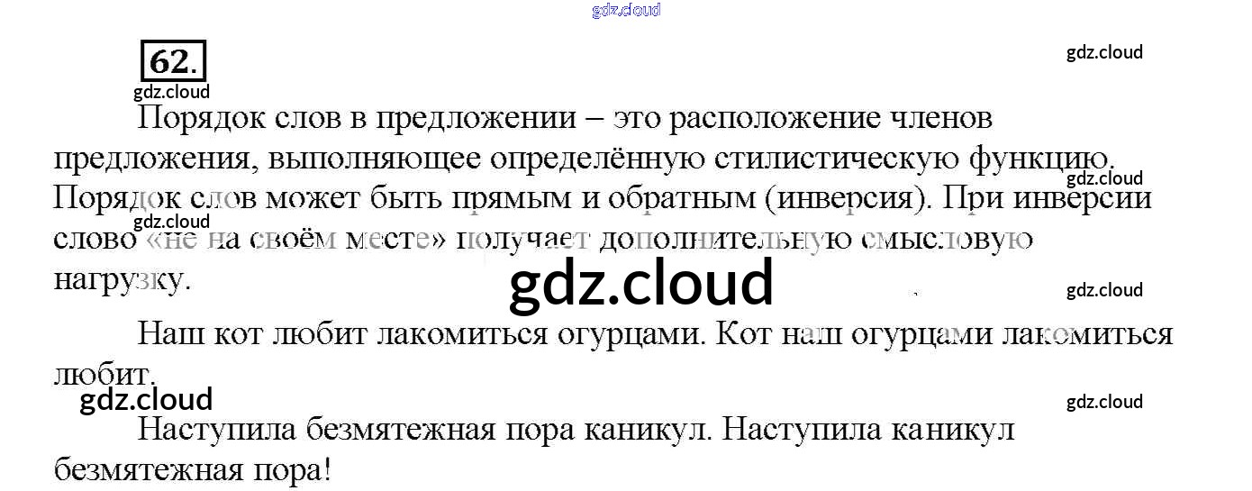 Ответ на задание 62 Рабочая тетрадь Русский язык за 8 (восьмой) класс Львов УМК 2016