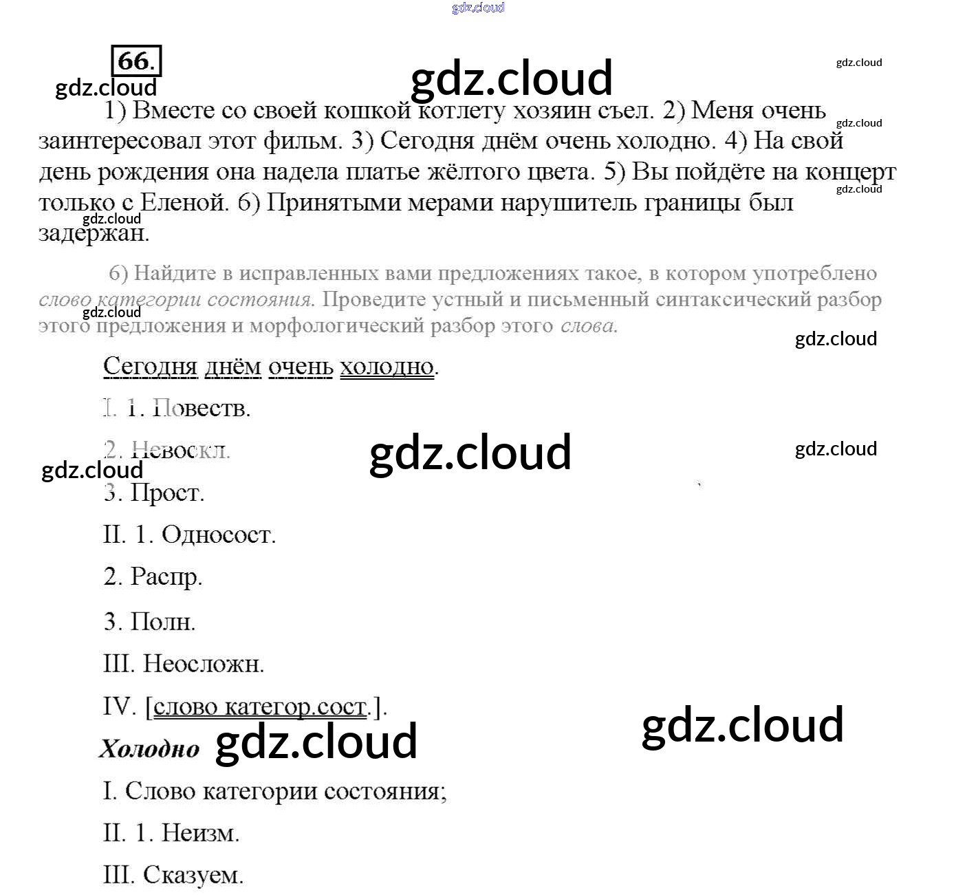 Ответ на задание 66 Рабочая тетрадь Русский язык за 8 (восьмой) класс Львов УМК 2016