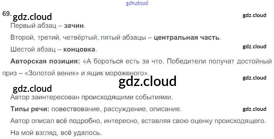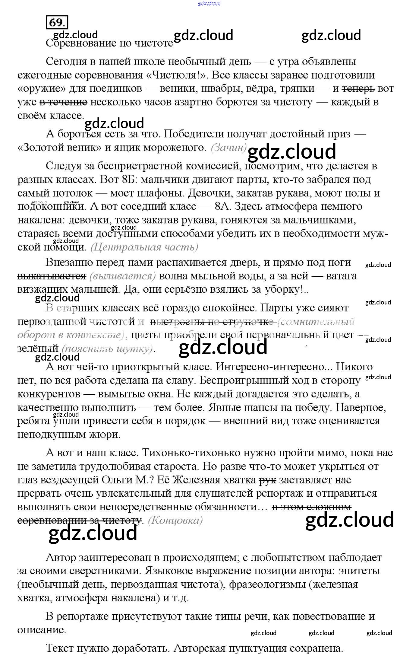 Ответ на задание 69 Рабочая тетрадь Русский язык за 8 (восьмой) класс Львов УМК 2016