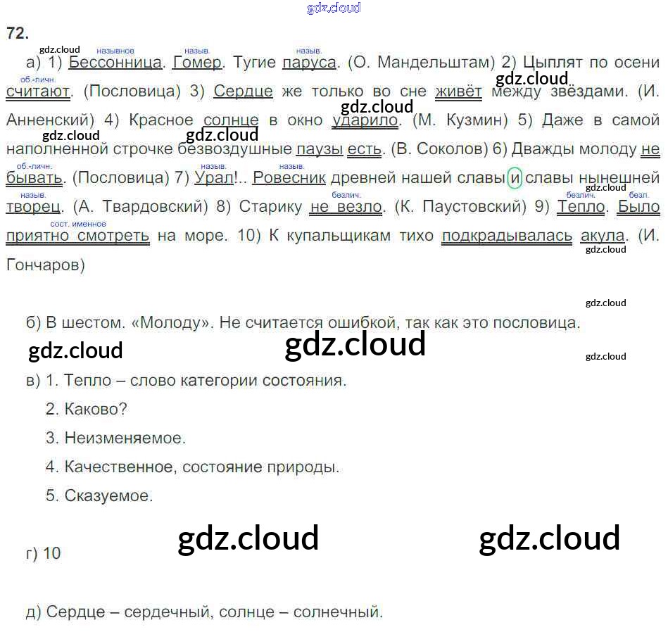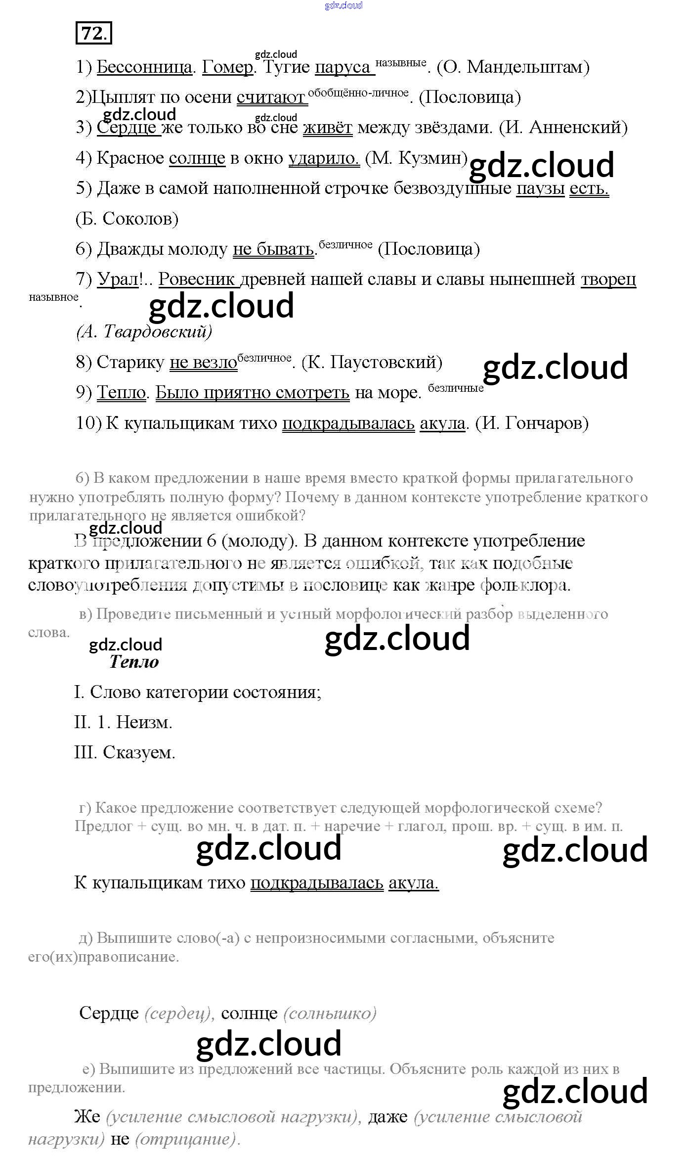 Ответ на задание 72 Рабочая тетрадь Русский язык за 8 (восьмой) класс Львов УМК 2016