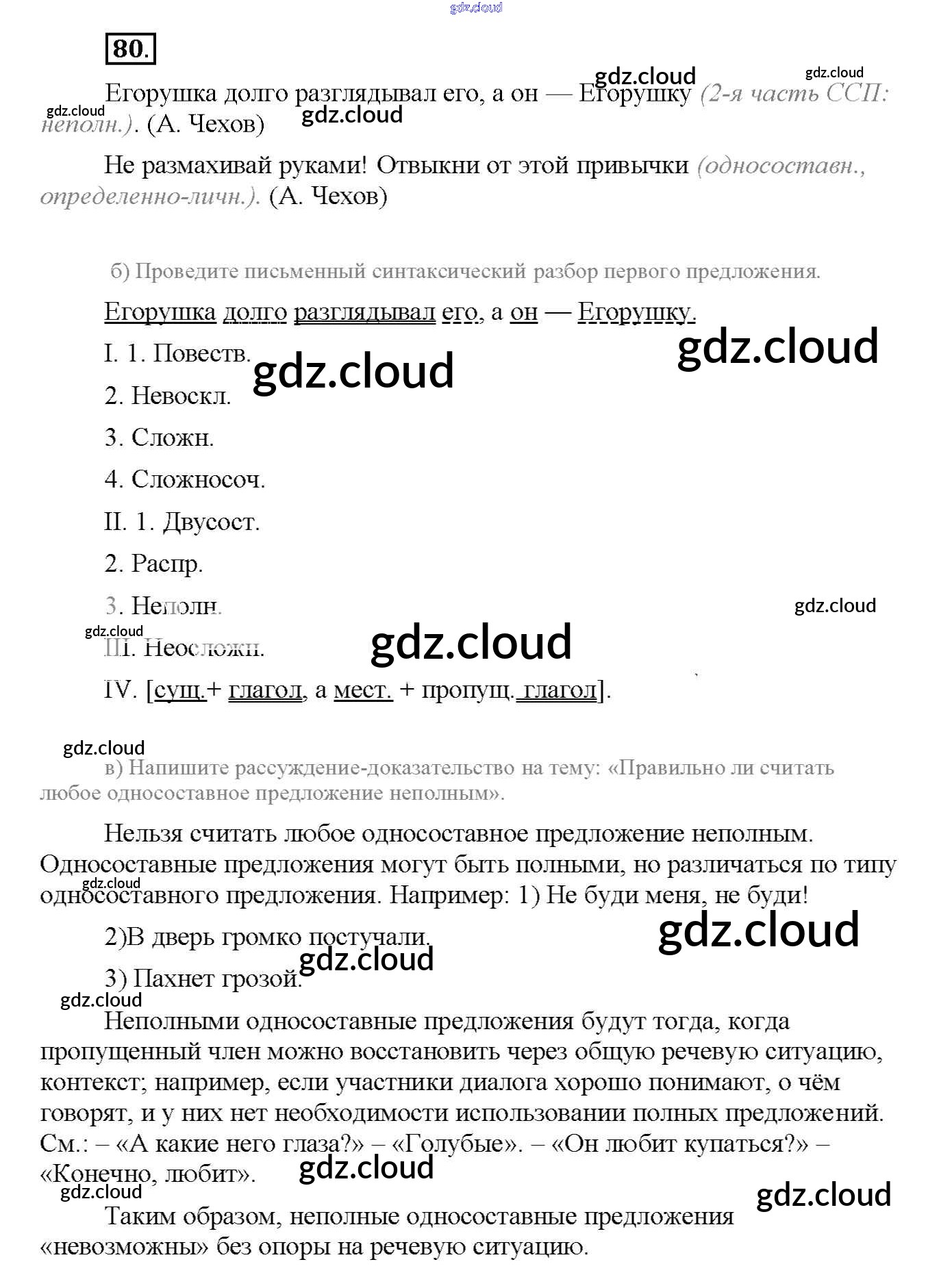 Ответ на задание 80 Рабочая тетрадь Русский язык за 8 (восьмой) класс Львов УМК 2016