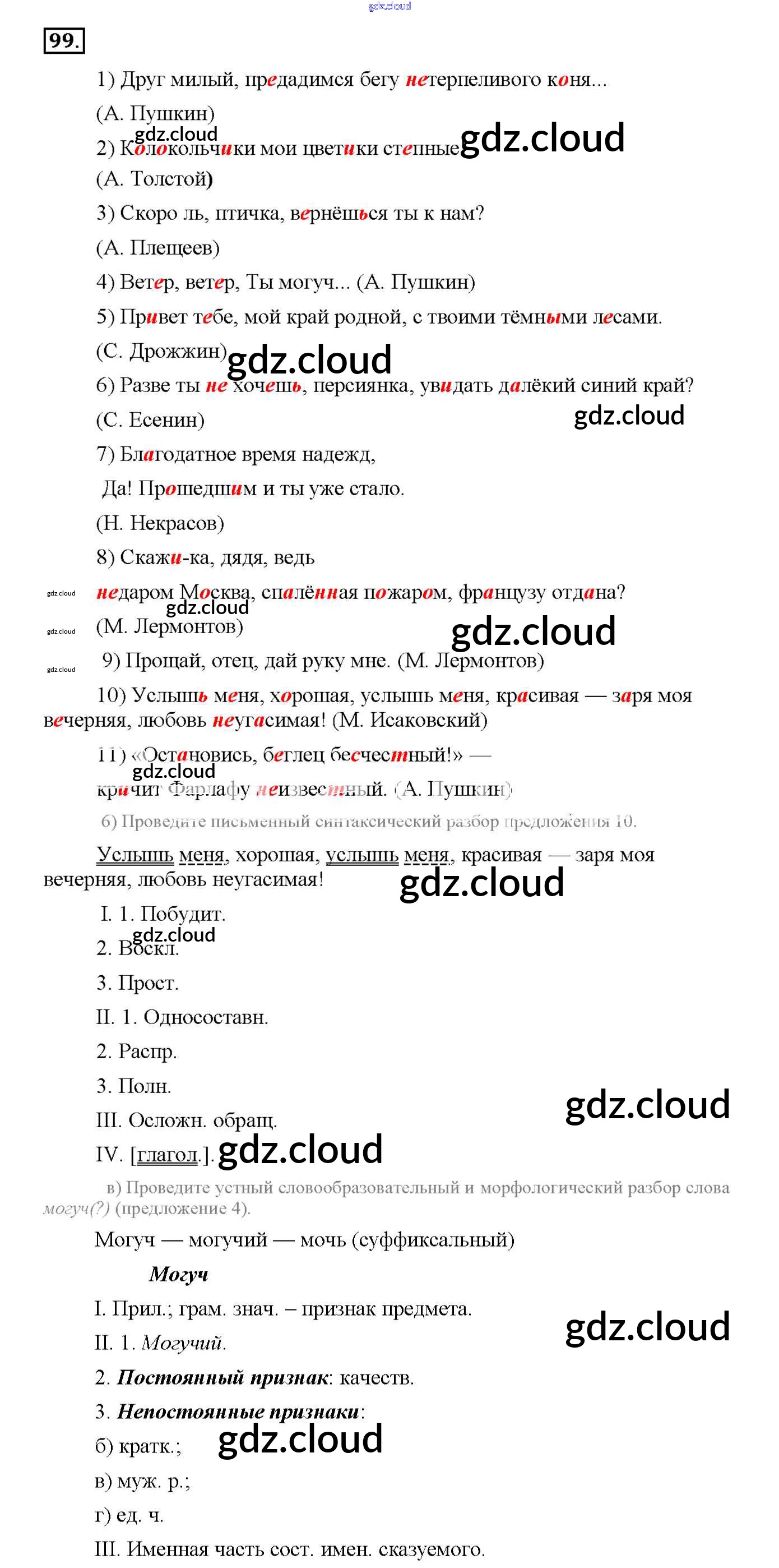 Ответ на задание 99 Рабочая тетрадь Русский язык за 8 (восьмой) класс Львов УМК 2016