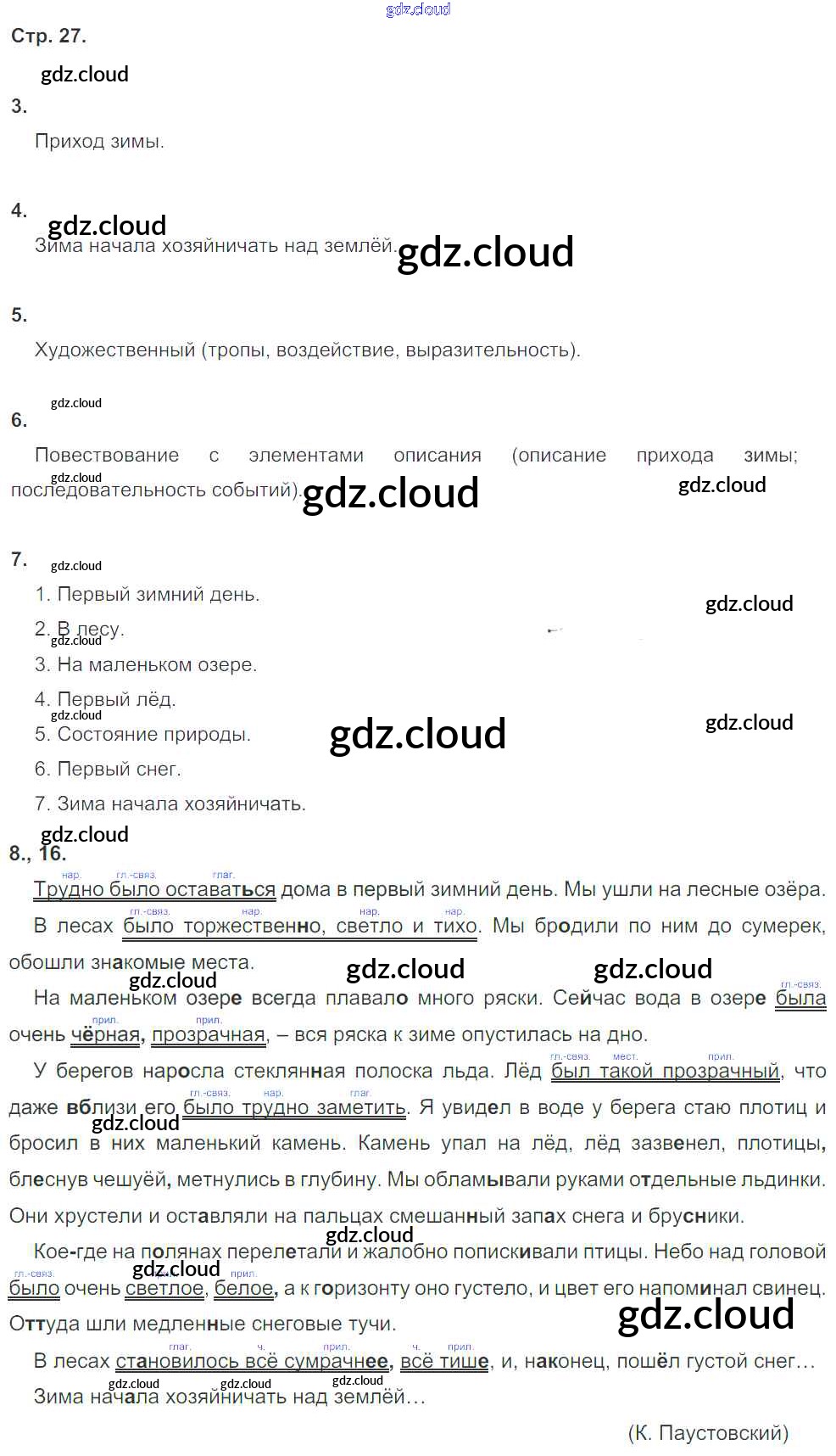 Ответ на задание 27 Комплексный анализ текста (Рабочая тетрадь) Русский язык за 8 (восьмой) класс Малюшкин 2018