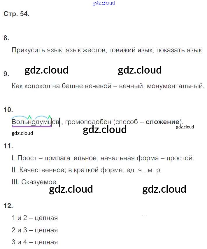 Ответ на задание 54 Комплексный анализ текста (Рабочая тетрадь) Русский язык за 8 (восьмой) класс Малюшкин 2018