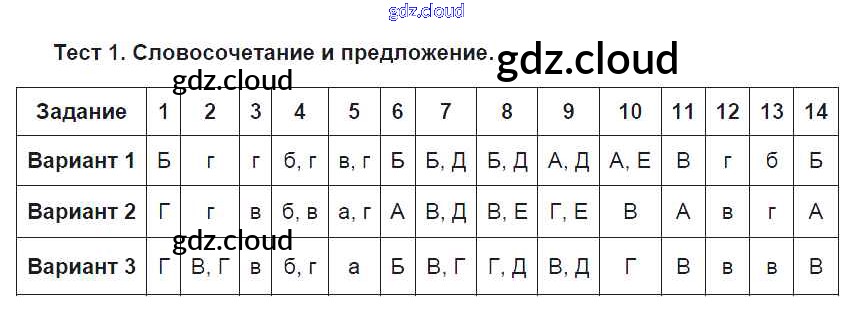Ответ на задание Тест №1. Словосочетание и предложение Тестовые задания Русский язык за 8 (восьмой) класс Малюшкин 2019
