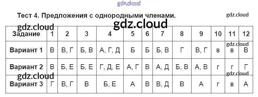 Ответ на задание Тест №4. Предложения с однородными членами Тестовые задания Русский язык за 8 (восьмой) класс Малюшкин 2019