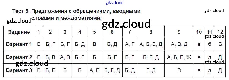Ответ на задание Тест №5. Предложения с обращениями, вводными словами и междометиями Тестовые задания Русский язык за 8 (восьмой) класс Малюшкин 2019