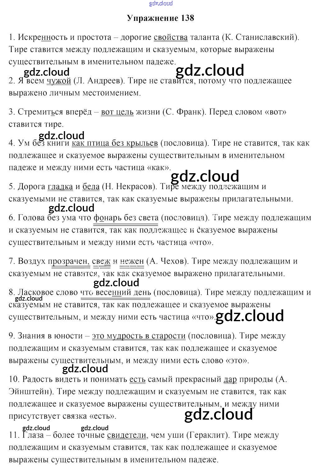 Ответ на задание 138 Учебник Русский язык за 8 (восьмой) класс Мурина, Игнатович, Жадейко 2018 ФГОС онлайн и без номера телефона.