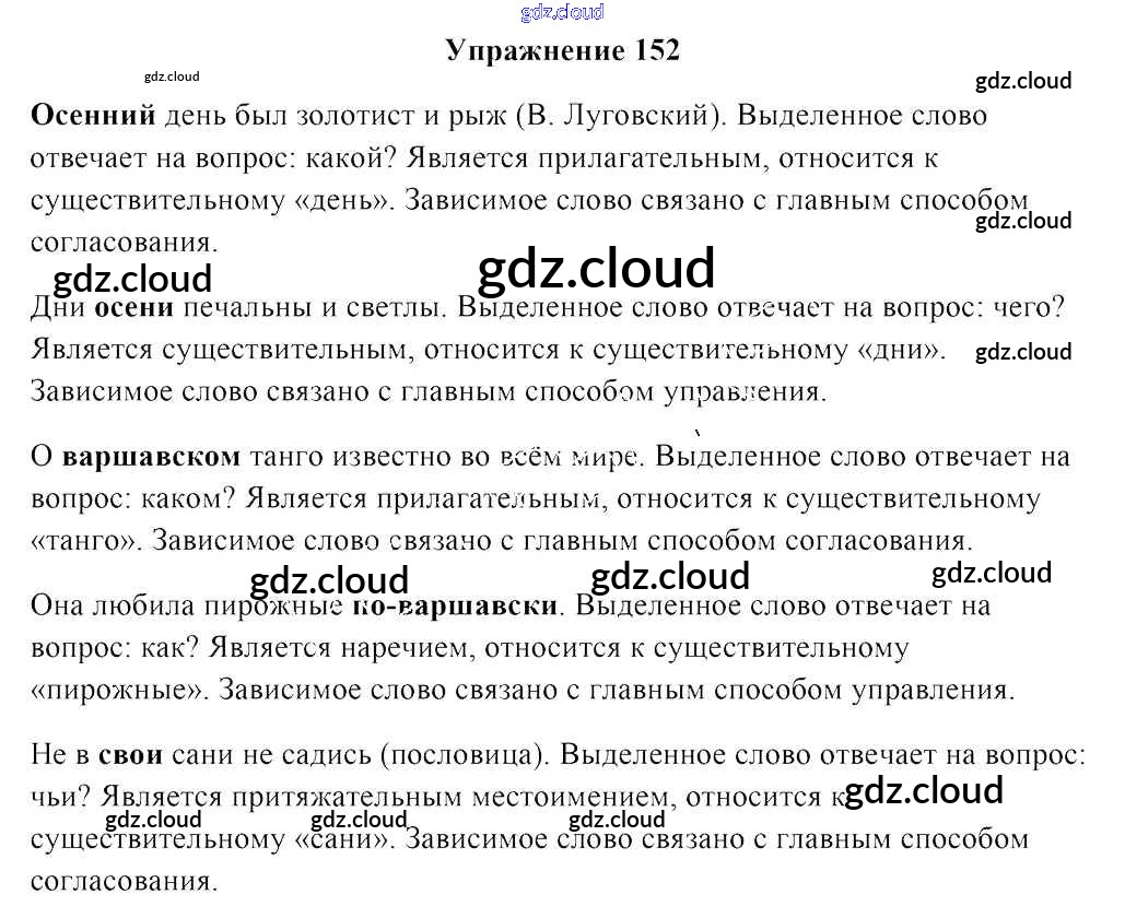 Ответ на задание 152 Учебник Русский язык за 8 (восьмой) класс Мурина, Игнатович, Жадейко 2018 ФГОС онлайн и без номера телефона.