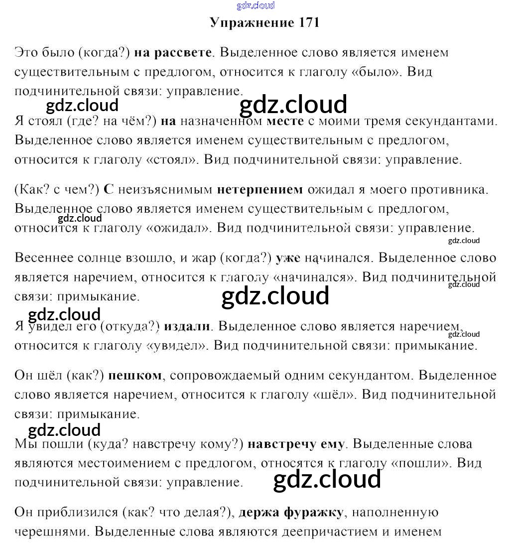 Ответ на задание 171 Учебник Русский язык за 8 (восьмой) класс Мурина, Игнатович, Жадейко 2018 ФГОС онлайн и без номера телефона.