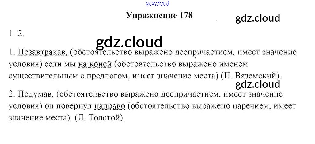 Ответ на задание 178 Учебник Русский язык за 8 (восьмой) класс Мурина, Игнатович, Жадейко 2018 ФГОС онлайн и без номера телефона.
