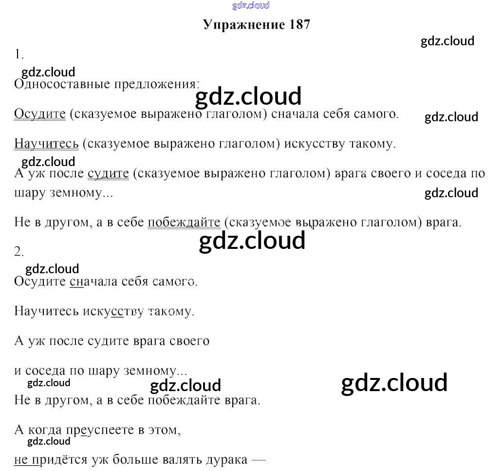 Ответ на задание 187 Учебник Русский язык за 8 (восьмой) класс Мурина, Игнатович, Жадейко 2018 ФГОС онлайн и без номера телефона.