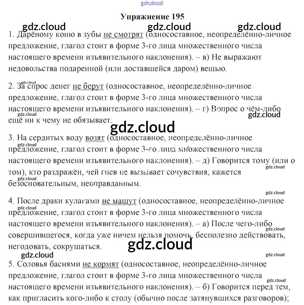 Ответ на задание 195 Учебник Русский язык за 8 (восьмой) класс Мурина, Игнатович, Жадейко 2018 ФГОС онлайн и без номера телефона.